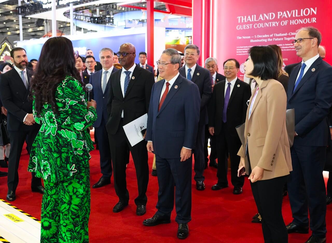 开幕式前,李强总理参观了企业展。开幕式后,李强总理同与会外国领导人共同巡馆。