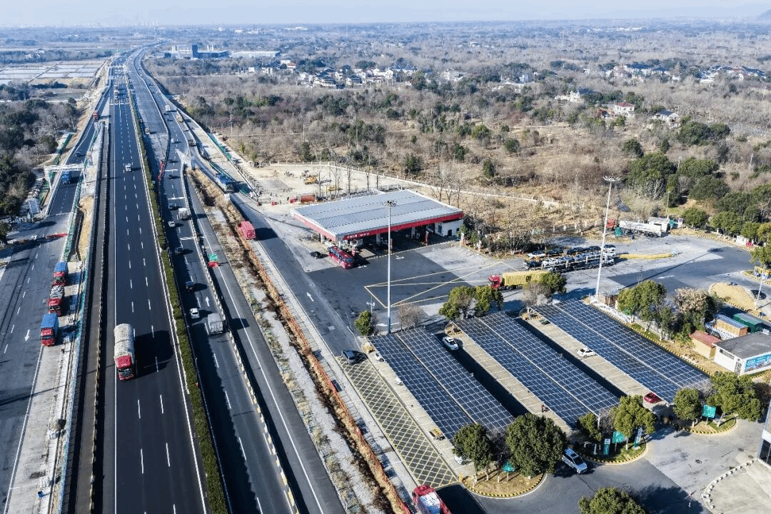 G50沪渝高速长兴服务区内的太阳能光伏板下是升级完成的高速服务区充电站(2026年1月7日摄,无人机照片)。新华社记者徐昱摄
