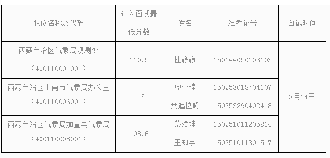 请递补考生按照《西藏自治区气象局2026年度考试录用参照公务员法管理事业单位机关工作人员面试公告》有关要求,尽快准备相关材料,于2026年3月4日15:00前进行面试确认,提交资格复审材料,并按要求参加资格复审和面试。