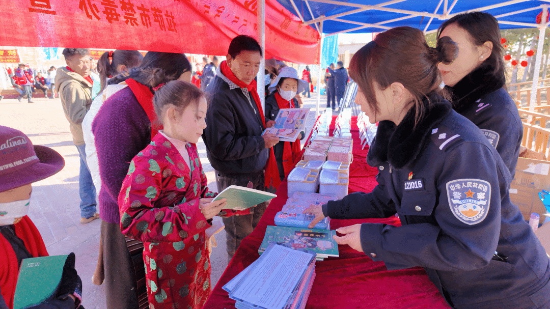 民警为群众讲解毒品仿真样品并发放禁毒知识读本
