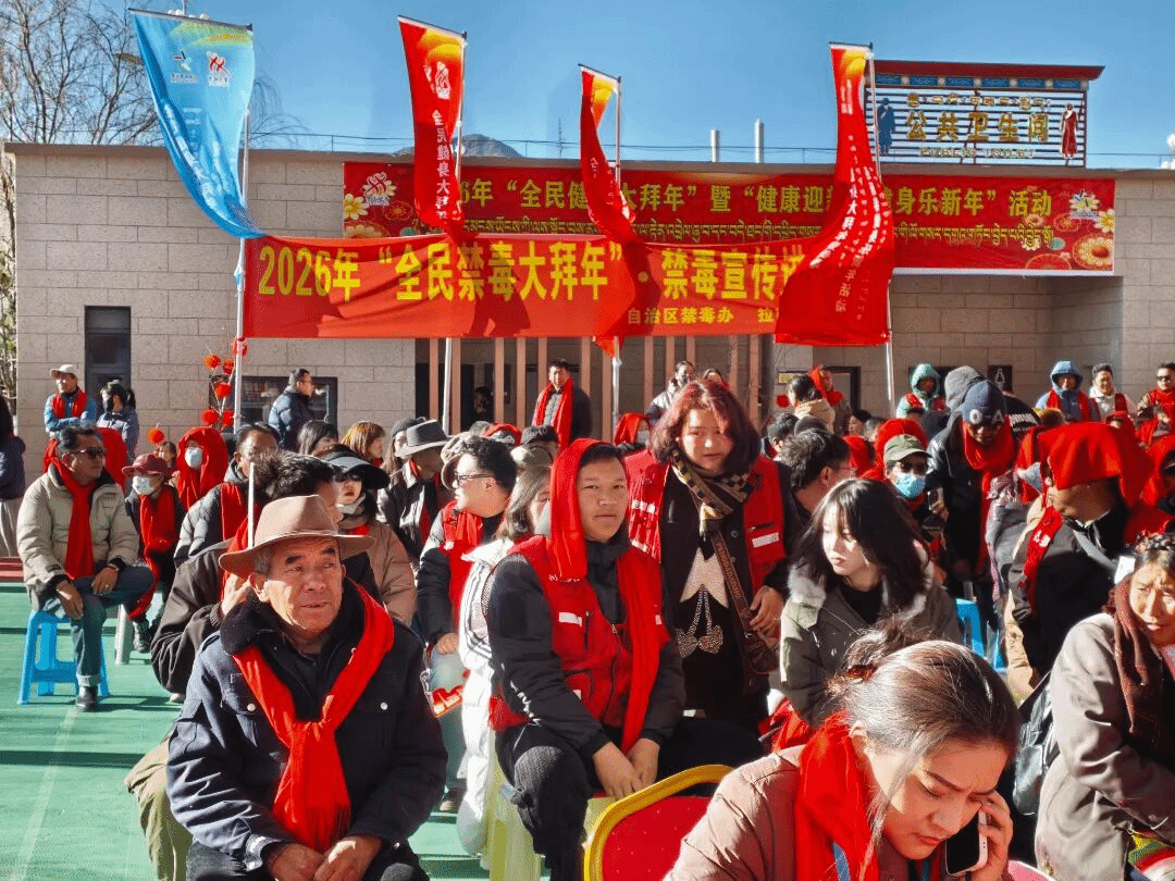 2026年2月4日立春之时,拉萨市城关区八一街道吉曲雄社区中华文化公园内一片欢声笑语,由自治区体育局主办的2026年“全民健身大拜年”暨“健康迎新春,健身乐新年”活动正在这里火热举行。自治区禁毒办联合拉萨市禁毒办巧妙地将禁毒宣传融入这一新春体育盛会,一并举办了以“全民禁毒大拜年.禁毒宣传进社区”为主题的禁毒宣传教育活动,让社区各族群众在参与健身活动的同时,接受了生动的禁毒教育。区禁毒办、区体育局相关负责同志出席活动开幕式。