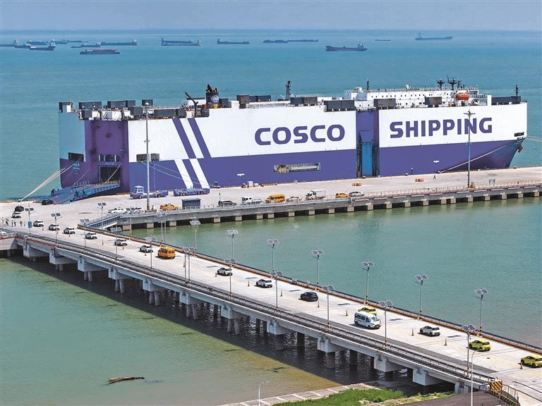 图为在江苏太仓港,装载3600余辆商品车的“玉衡先锋”号即将启程前往东南亚(2025年9月16日摄,无人机照片)。 新华社记者 李博 摄