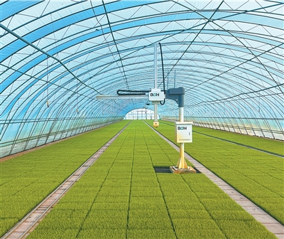 黑龙江北大荒集团友谊农场通过机械作业手臂等先进技术进行智能育秧,提高秧苗品质、降低生产成本。
