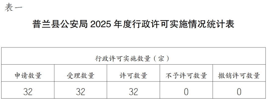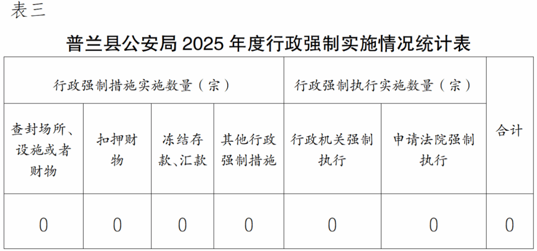 根据《国务院办公厅关于全面推行行政执法公示制度》规定,现将普兰县公安局2025年度行政执法统计报表公示如下: