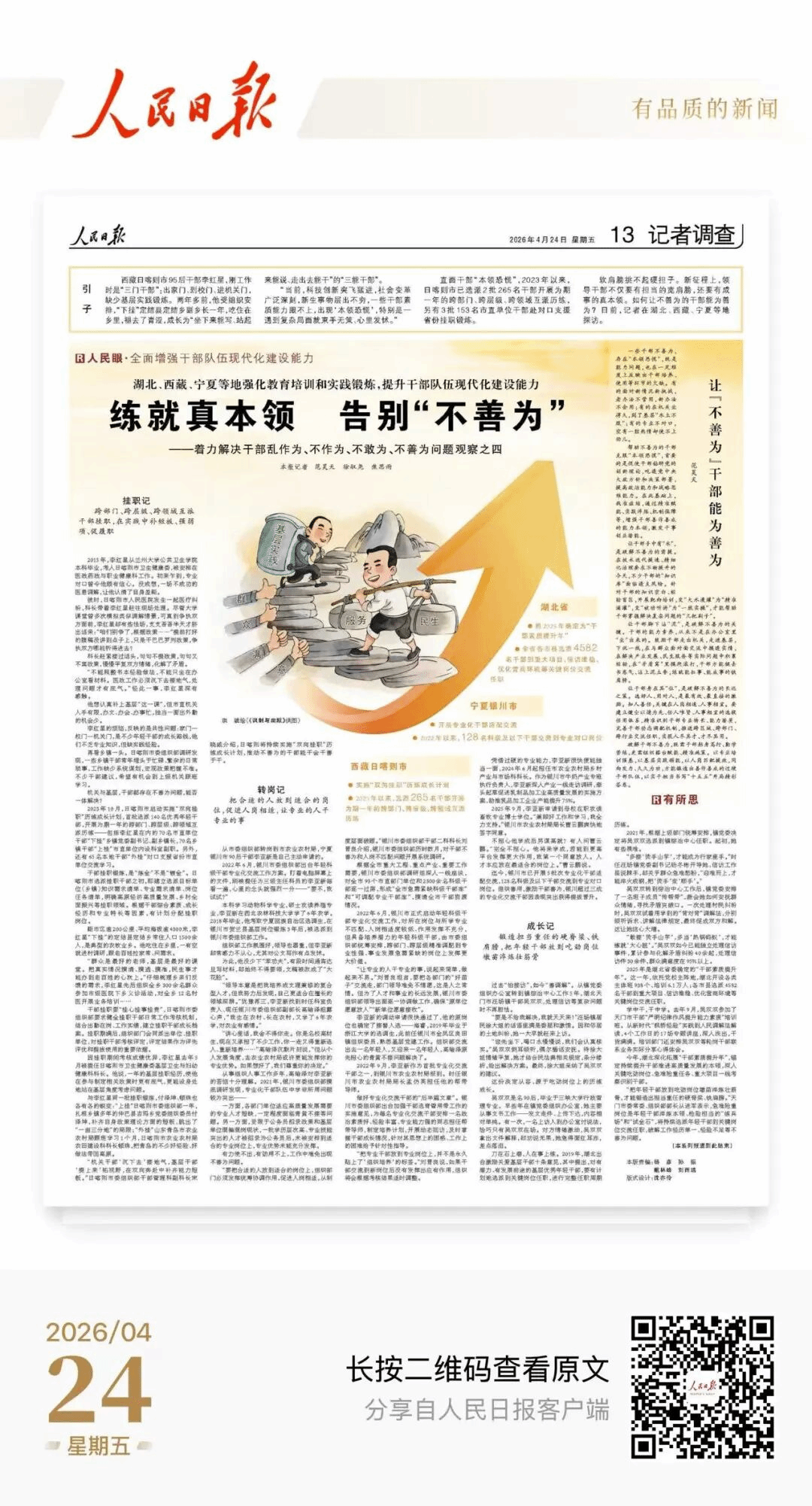 人民日报整版聚焦西藏提升干部队伍现代化建设能力