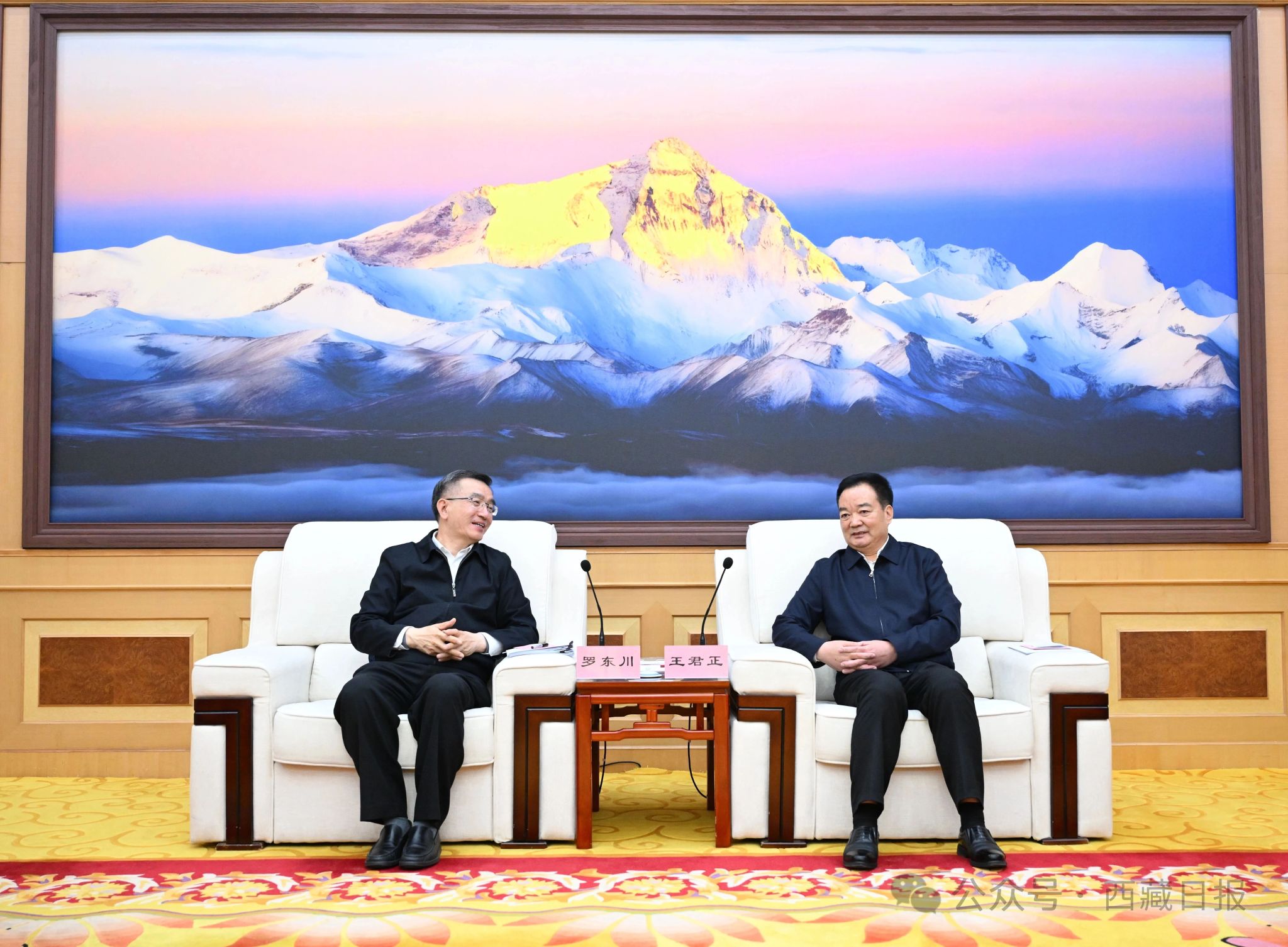王君正书记指出,西藏与青海山水相连、人文相通、亲如一家,共同承担着维护国家安全和社会稳定、筑牢青藏高原生态安全屏障、推动西部大开发的使命任务。我们要认真学习贯彻习近平总书记重要指示精神,共同做好维护社会稳定工作,不断提高基层治理体系和治理能力现代化水平,按照系统推进我国宗教中国化、加强宗教事务治理法治化的要求,积极引导藏传佛教与社会主义社会相适应,确保政治安定、社会稳定、民族团结、宗教和顺。进一步铸牢中华民族共同体意识、推进中华民族共同体建设,加强人文交流合作,促进各民族交往交流交融,让两地人民心灵相通、情感交融,共建中华民族共有精神文化家园。大力推进生态文明建设,深刻认识青藏高原最大的价值在生态、最大的责任在生态、最大的潜力也在生态,认真落实青藏高原生态保护法,科学开展国土绿化行动,协同推进降碳、减污、扩绿、增长,把青藏高原打造成为全国乃至国际生态文明高地。深化全方位务实合作,积极发展高原特色优势产业,特别是特色农牧业和清洁能源产业,强化文化旅游合作,建设立体交通体系,取长补短、优势互补,为高质量发展打下坚实基础。