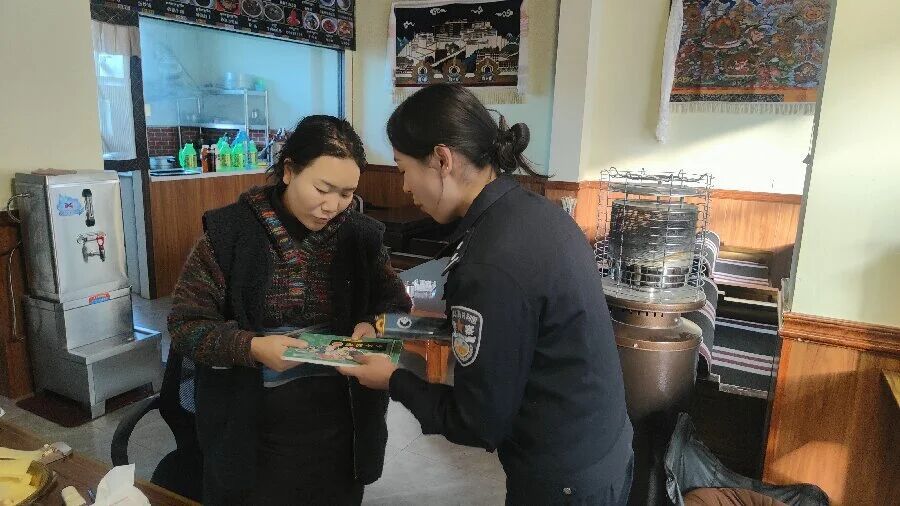 20251222日,拉萨市公安局禁毒支队组织民警走进城关区当巴社区,深入社区内甜茶馆、商铺等场所开展“入户”式的禁毒宣传教育活动。活动现场通过与群众面对面接触的方式,向广大社区群众展示仿真毒品模型、发放藏汉双语宣传资料,以通俗易懂的语言讲解毒品,特别是新型毒品和未列管成瘾性物质的危害,以及常见伪装形式及防范知识。民警结合真实案例,以案说法,提醒群众提高警惕,自觉远离毒品,并鼓励积极举报涉毒线索。